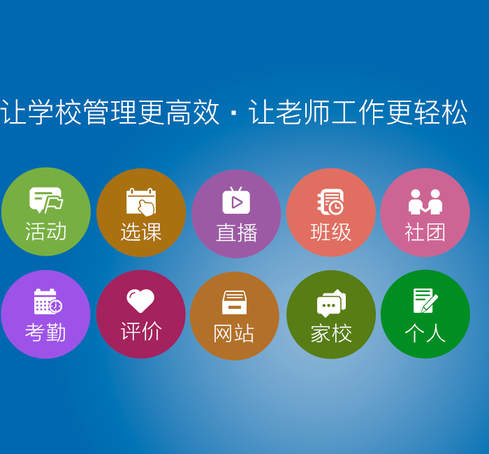 通过互联网和手机,将学校的任何个人(老师、家长和学生)和组织(学校、班级、社团、部门和自定义群组)连接起来,让他们能够随时随地、高效快捷地进行交流、互动和协作。